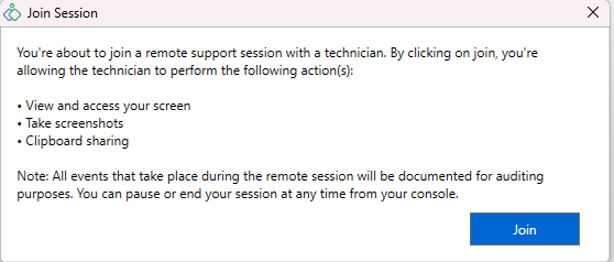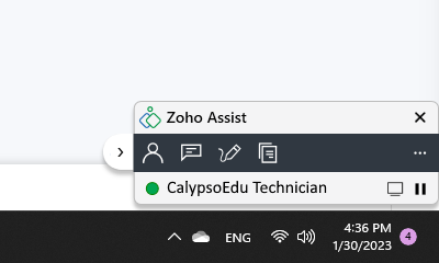 Once you have join the session you will be able to see who is connected to your computer in the bottom right of your computer. Here you can receive chat messages from the support technician and end your session whenever you choose.