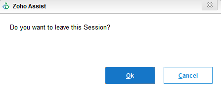 After clicking the X button Zoho Assist will ask you to confirm leaving of your session.