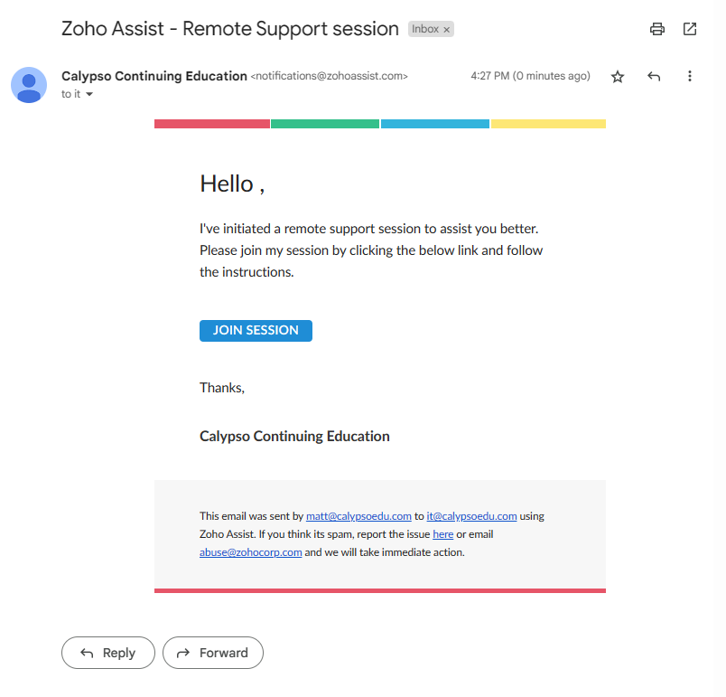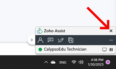 At the end of your session the technician can end the session on or you can. To end the session click the "X" button on the Zoho Assist Window.