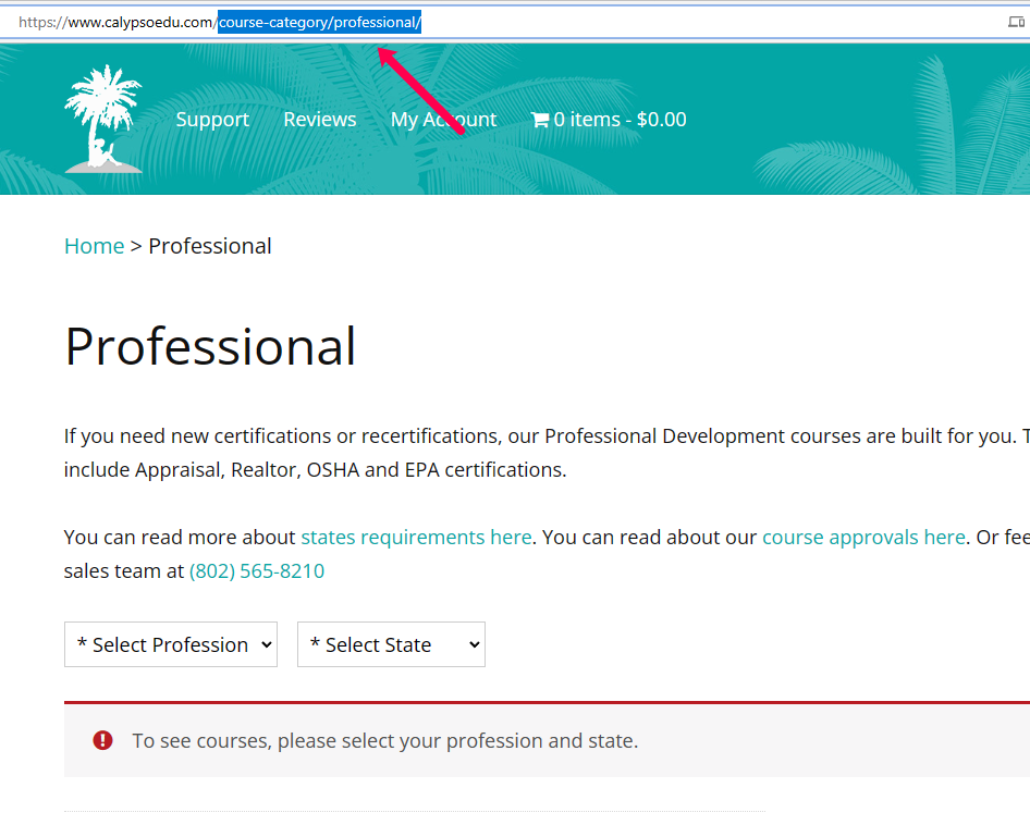2.Copy a portion of the URL of the page you want to refer your customers to. This portion is everything after https://www.calypsoedu.com/.